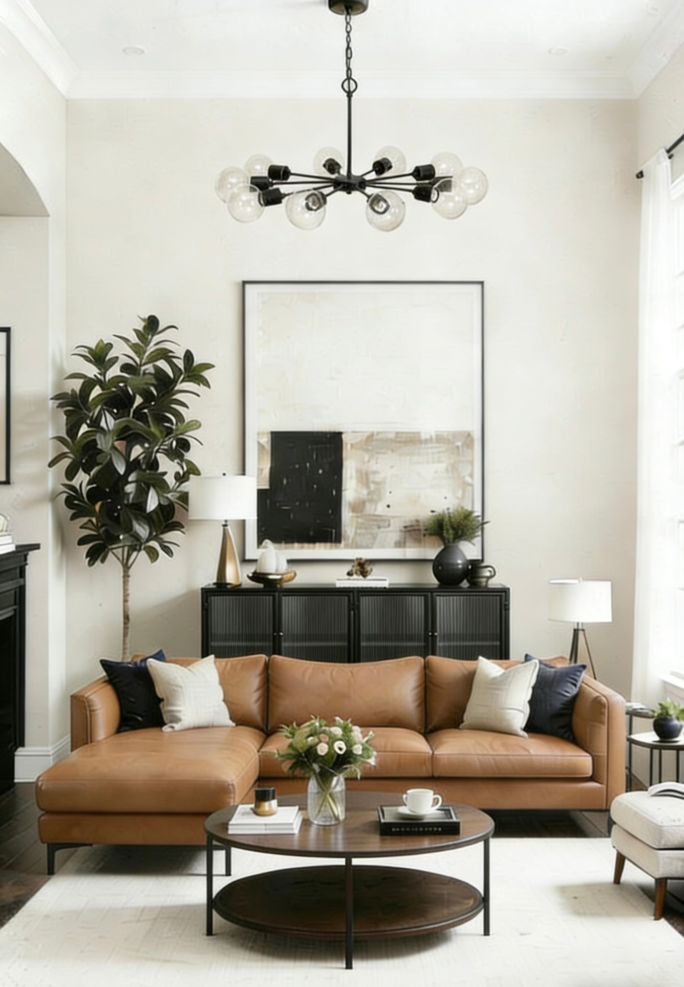 Modern Iron Chandelier with Jute Cord
