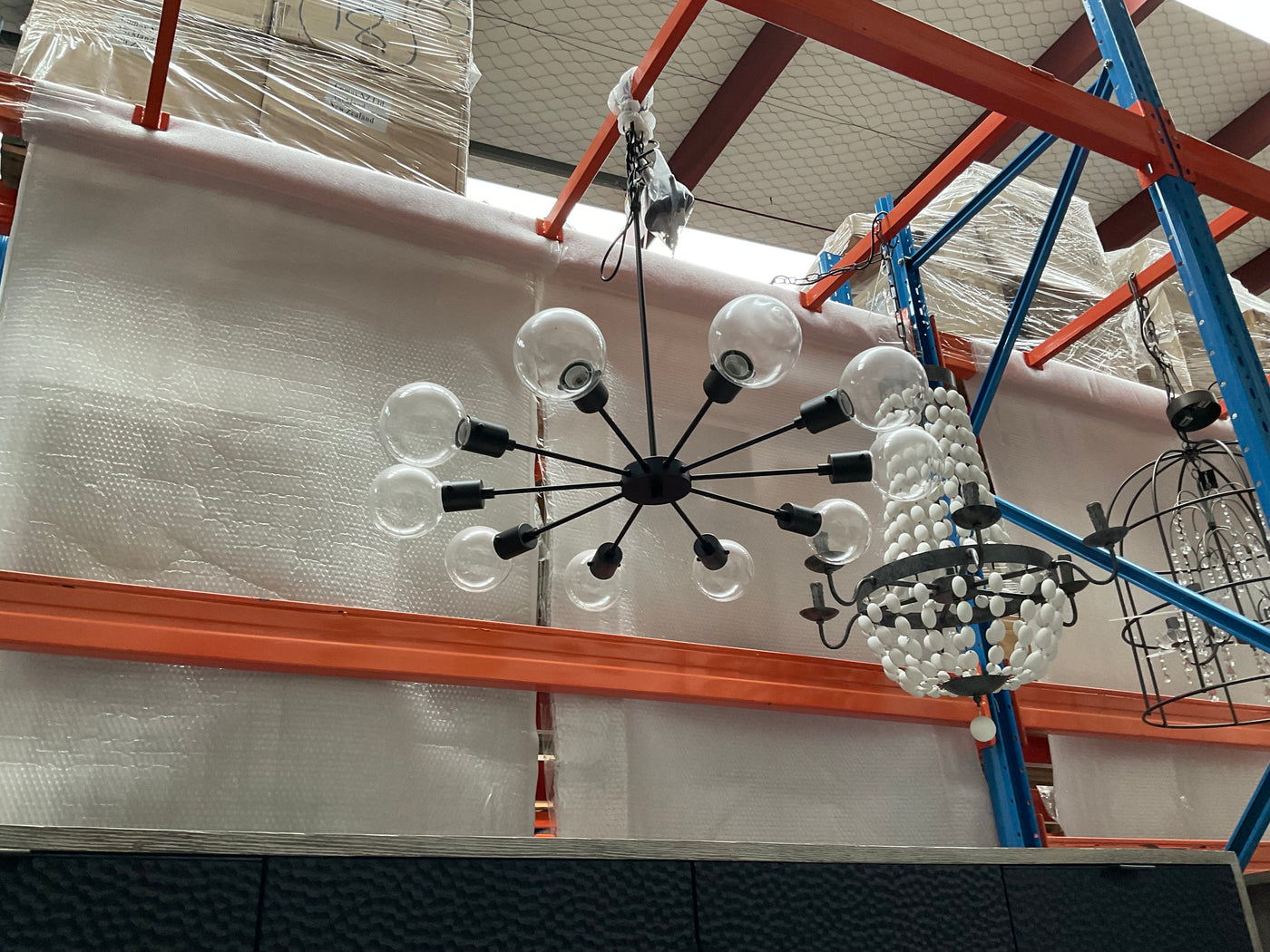 Metal Pendant Lamp w/ 10 Lights & Glass Bulbs, Antique Black