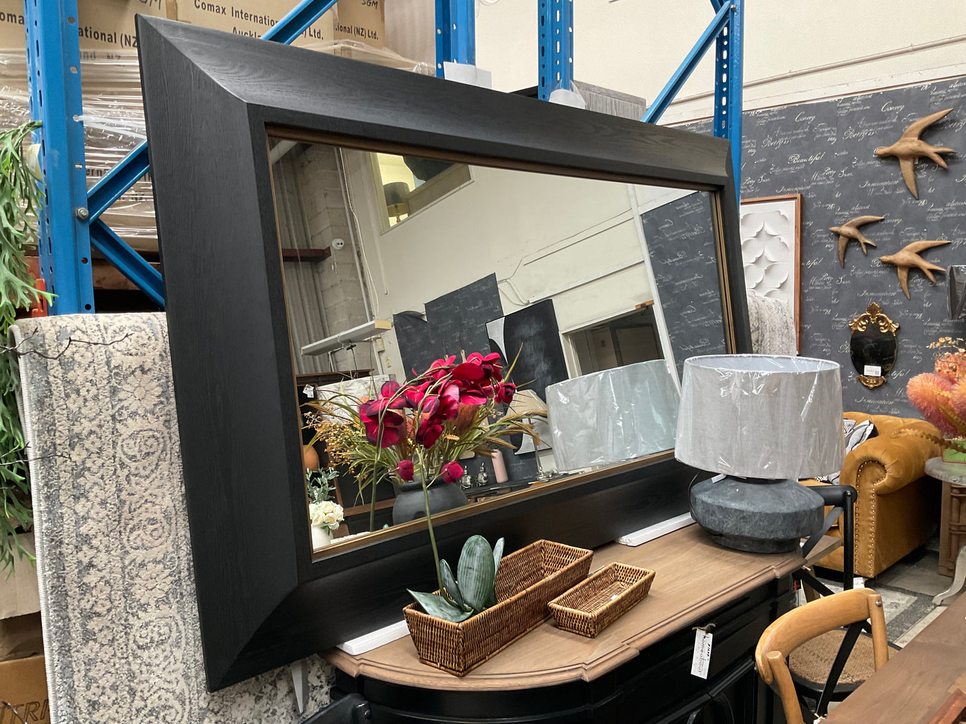 BLACK &GOLD OAK VENEER RECTANGLE WALL MIRROR 1.85M