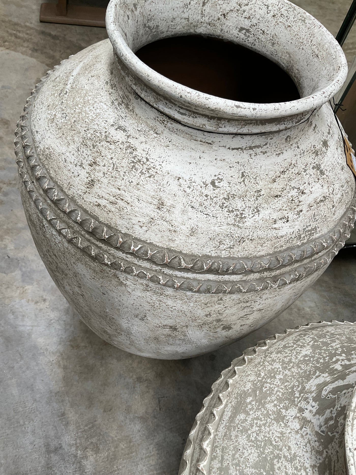 Lombok Urn Beaded Rustic White L 45x60cm